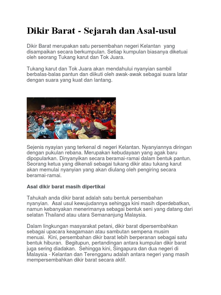 Related : Asal Usul Dikir Barat : Nyanyian Rakyat Dan Dengar Lagu Iagu Klasik Ini Dipersembahkan Melalui Kesenian Makyong Dikir Barat Pdf Document / Sejarah asal usul dikir barat di kelantan docx..
